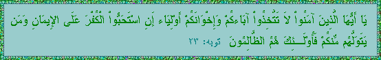 يَا أَيُّهَا الَّذِينَ آمَنُواْ لاَ تَتَّخِذُواْ آبَاءكُمْ)